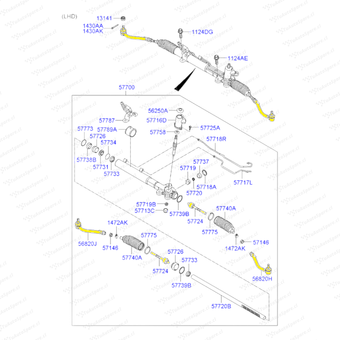 Kit Terminales + Axiales Direccion SANTA FE 2006-2012. PAR 56820-2P000, 56820-2P900, 57724-2B000