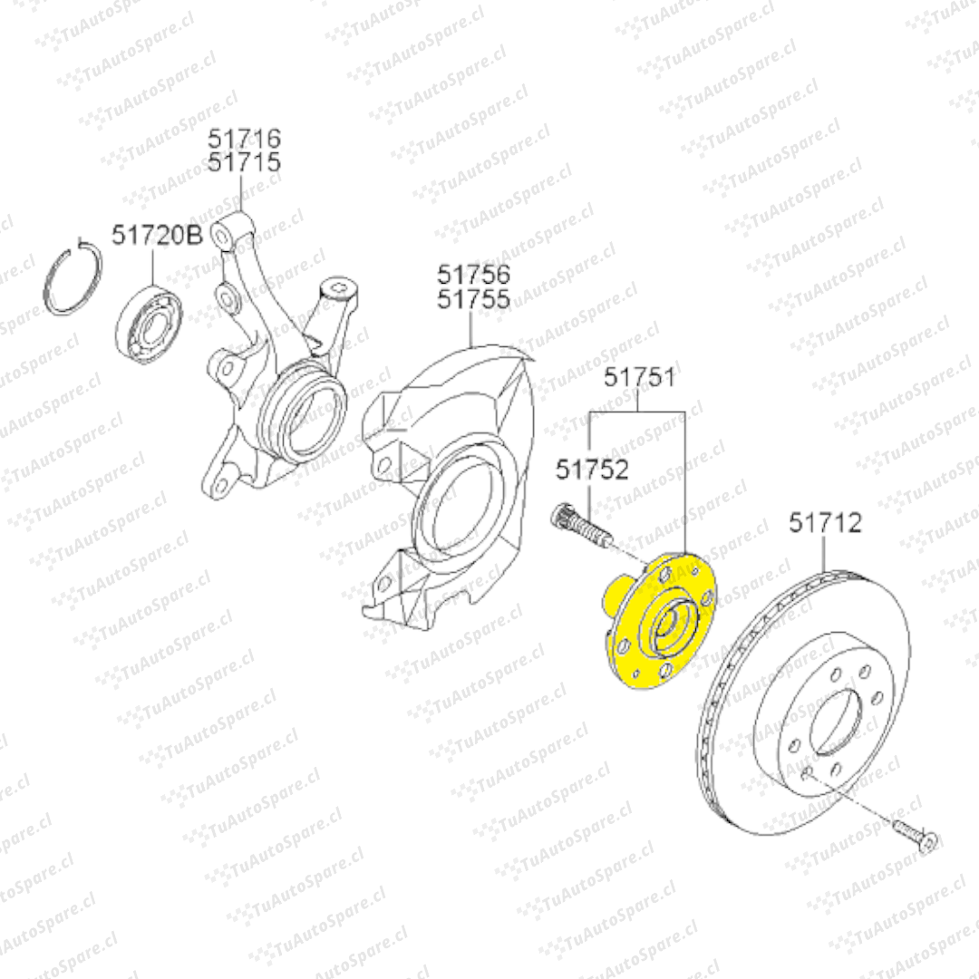 Maza Delantero i20 2016-2023. PAR 51750-1J000
