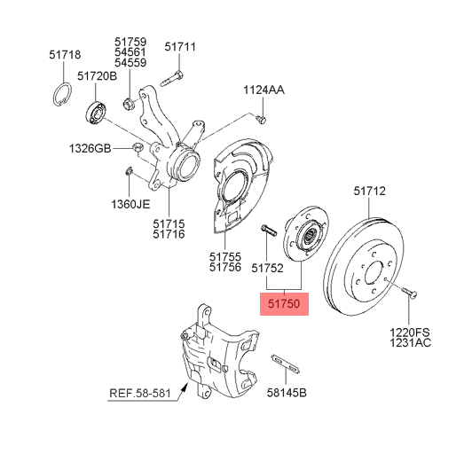 Maza Delantero MATRIX 2002-2007, Izq/Der 51750-2D000