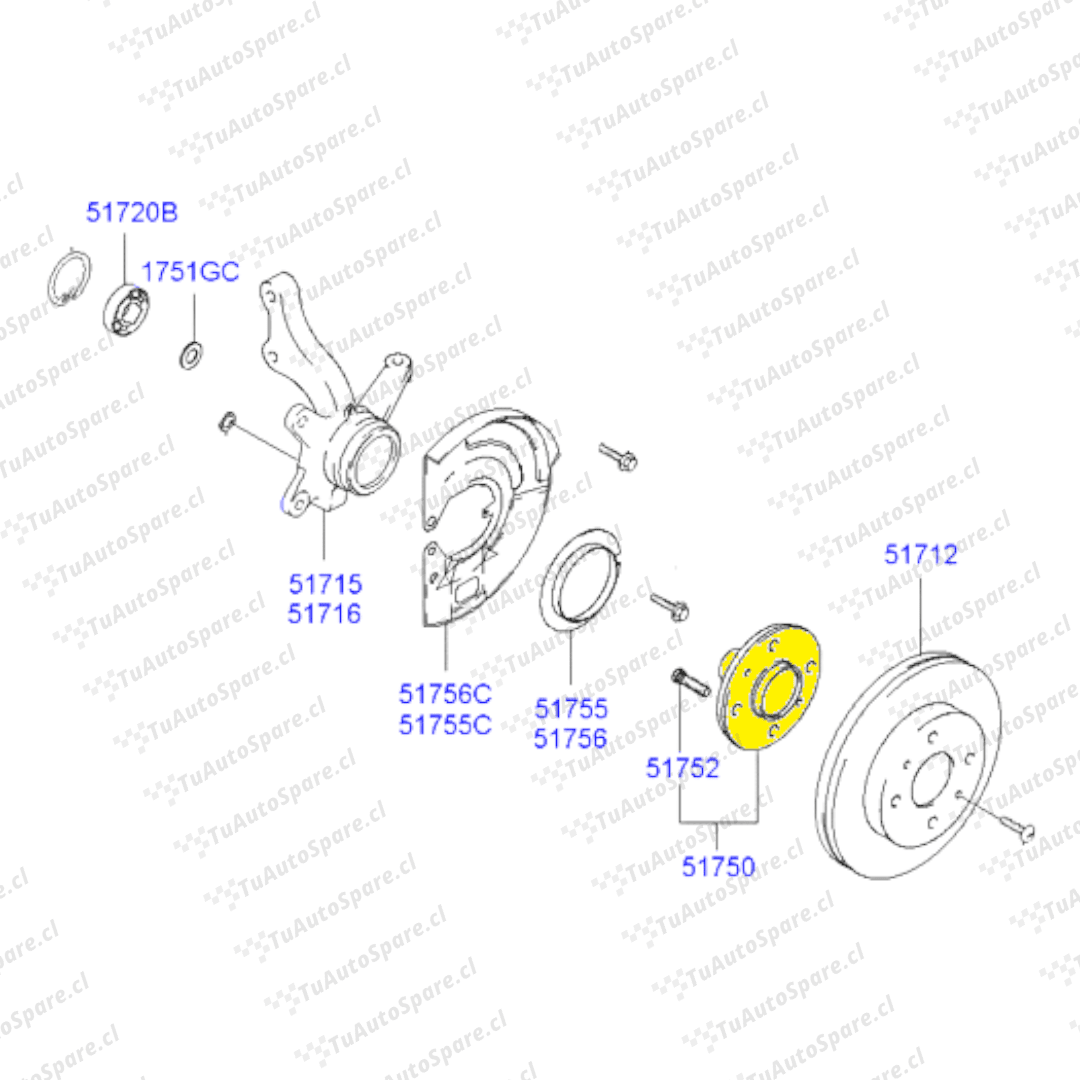 Maza Delantero SANTA FE 2000-2005, Izq/Der 51750-3A003