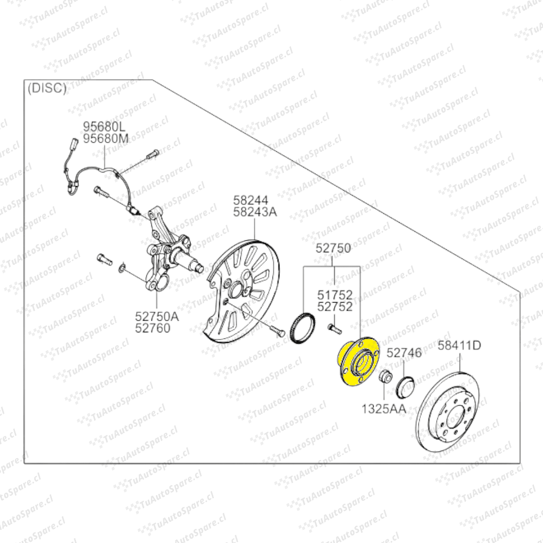 Maza/Rodamiento Trasero CERATO (C/ABS) 2004-2009. PAR 52710-2D000