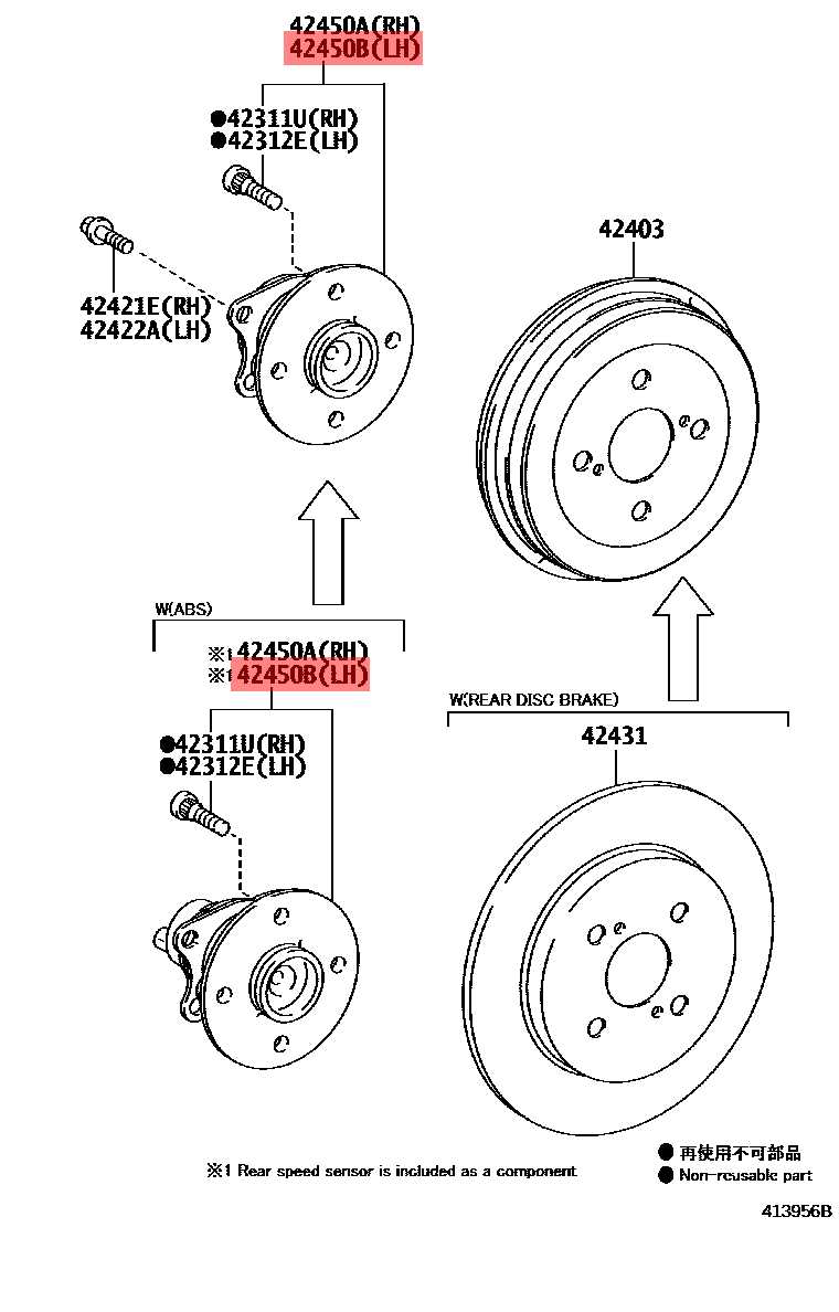 Maza/Rodamiento Trasero YARIS (C/ABS) 2014-2018. PAR 42410-0D090-A