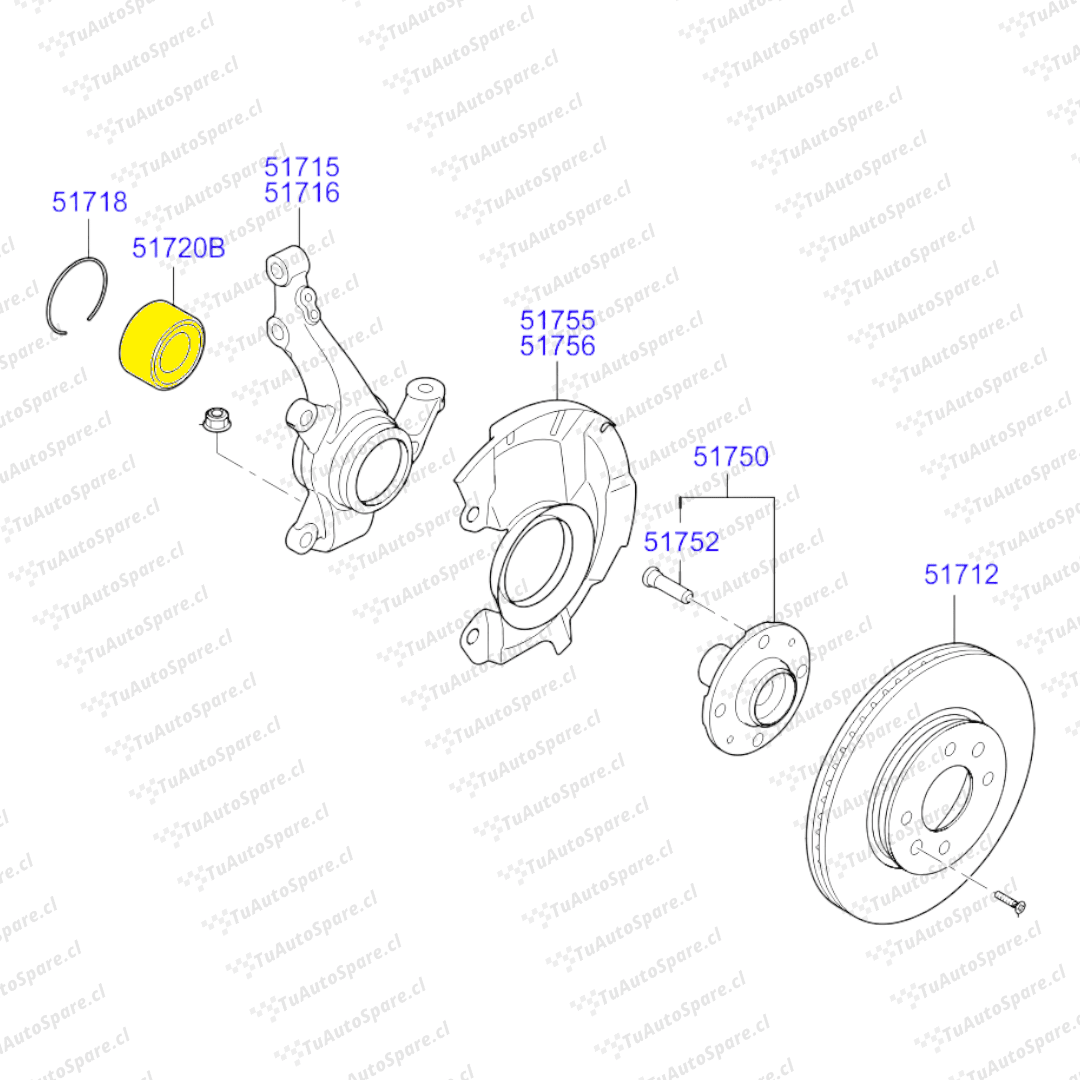 Rodamiento Delantero ACCENT 2000-2020, Izq/Der 51720-02000