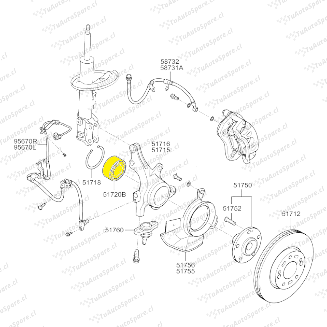 Rodamiento Delantero CARENS 2006-2016, Izq/Der 51720-38110