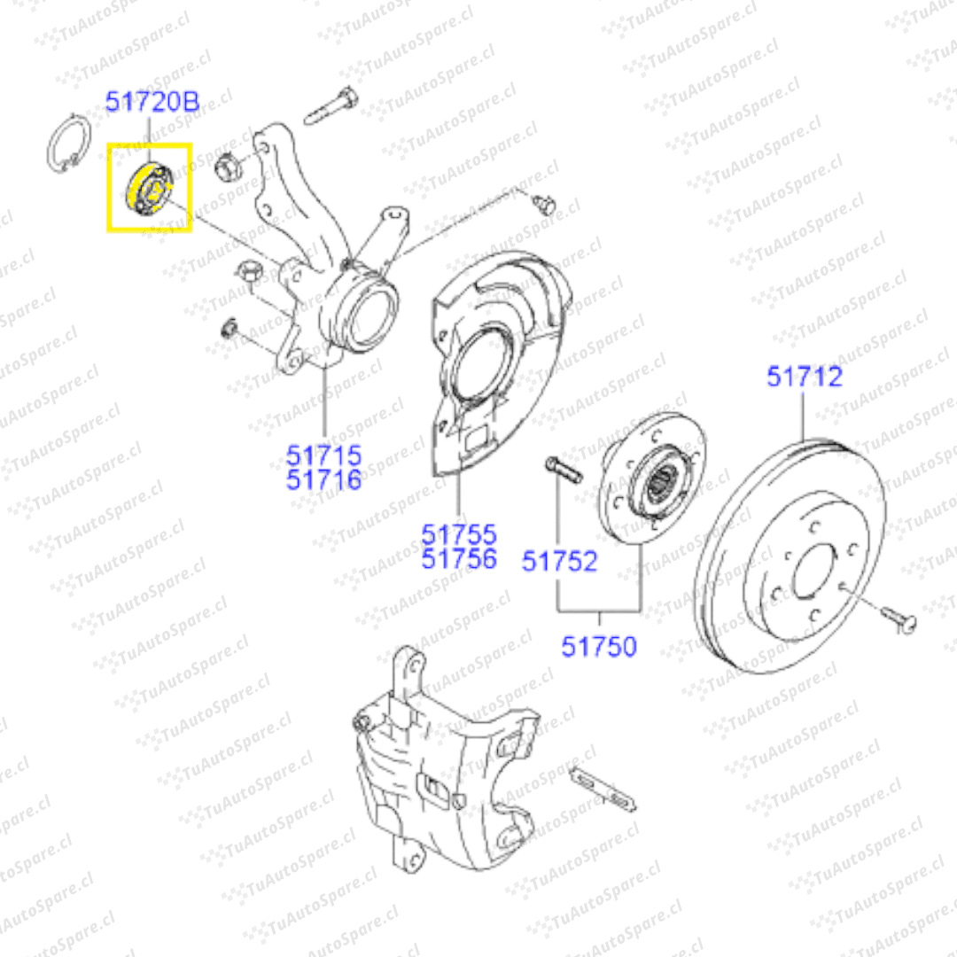 Rodamiento Delantero ELANTRA (1.6, 1.8) 2001-2006, Izq/Der 51720-2D000