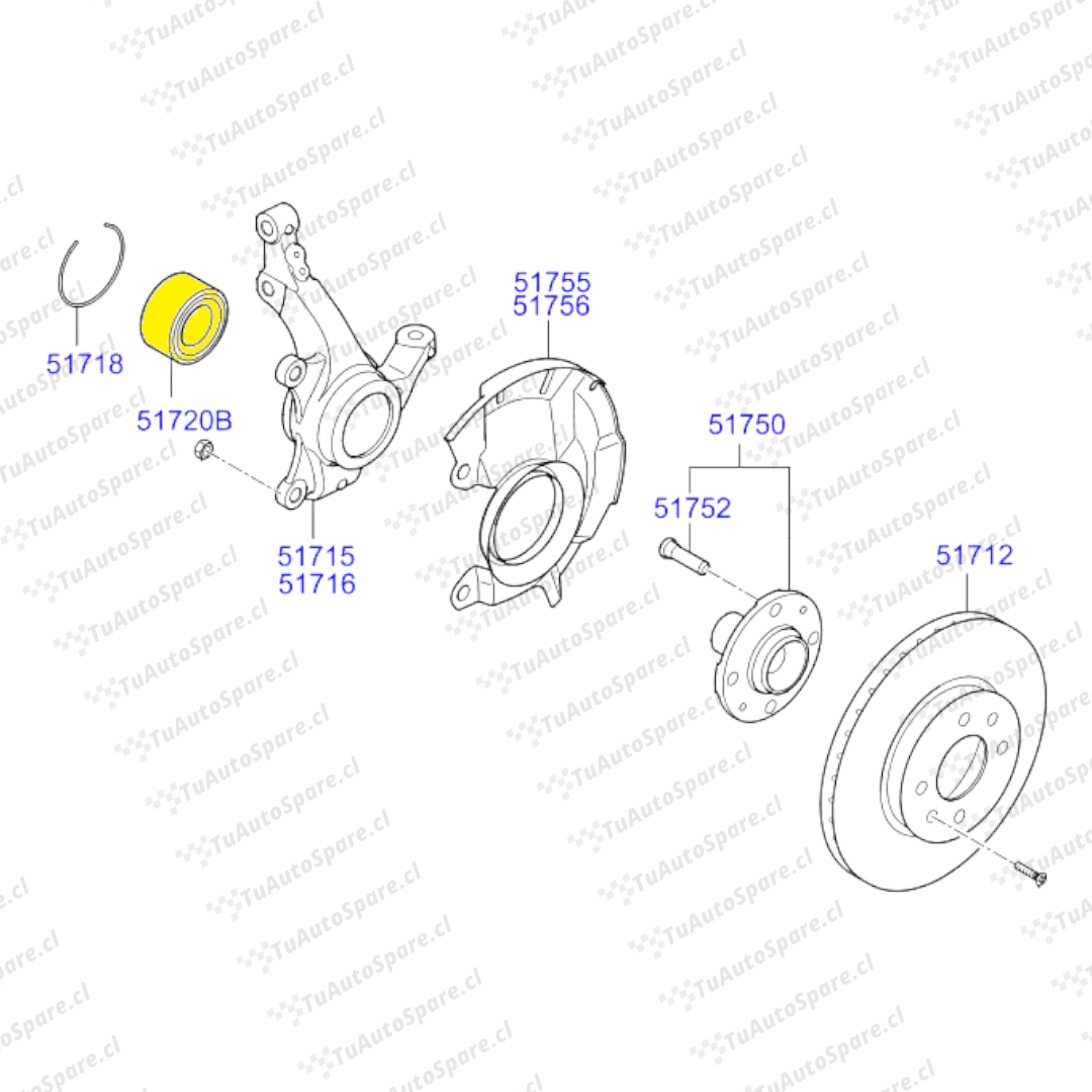 Rodamiento Delantero i20 2017-2020, Izq/Der 51720-1W000