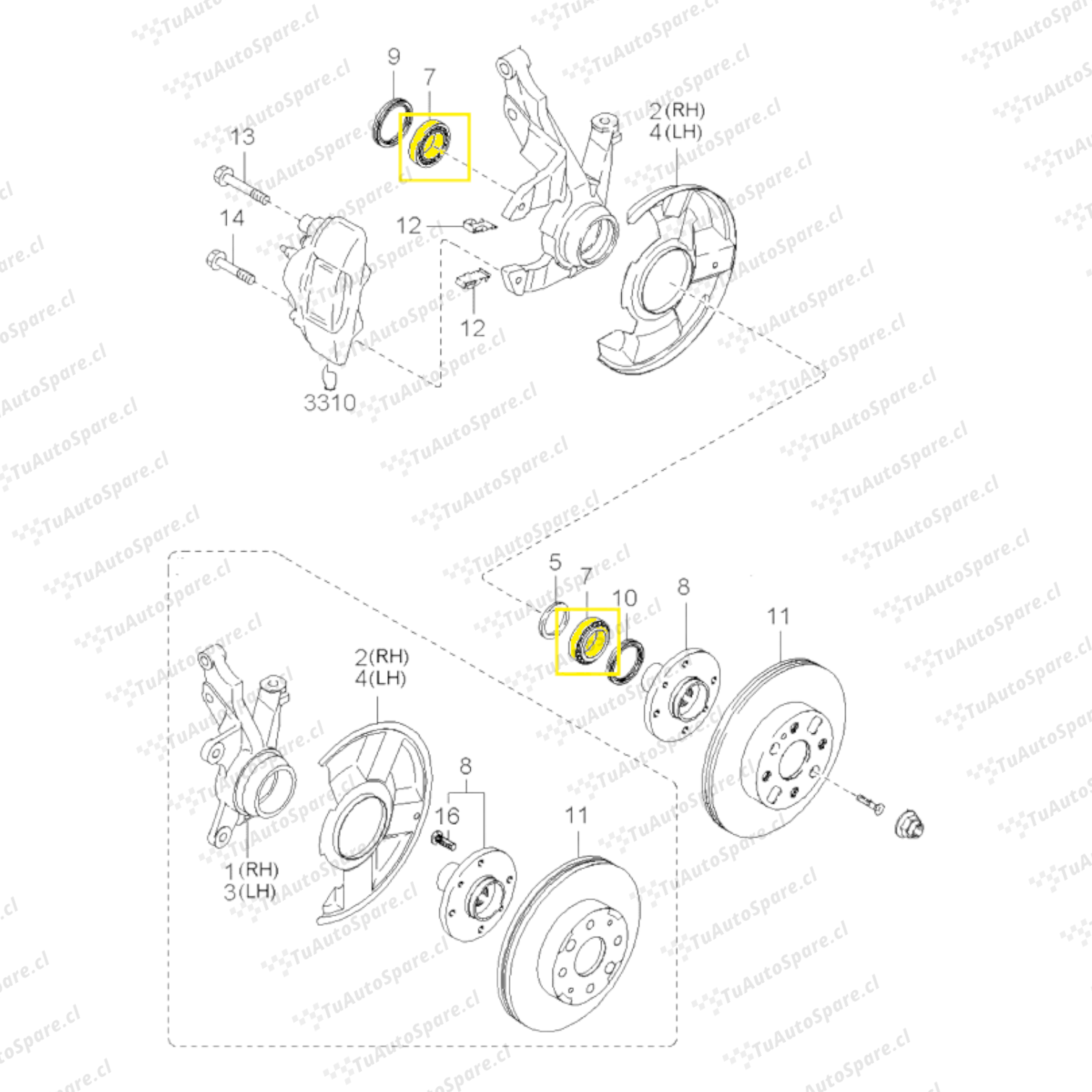 Rodamiento Delantero RIO 2000-2005, Izq/Der 51720-FD000