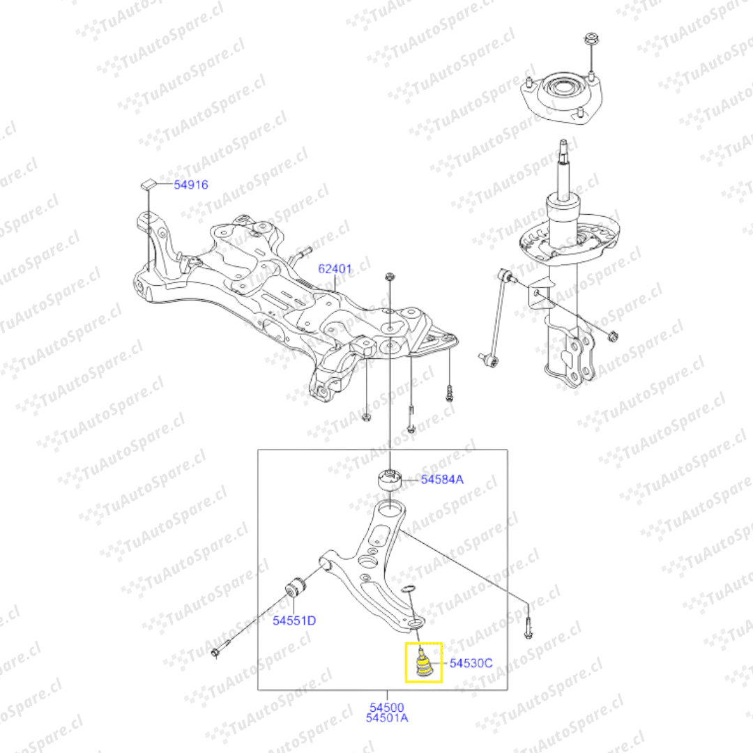 Equivalente: 54530-3X000, 25000, 25A00, 2F000, 31600, H9100 ; 54503-22000, 22A00, 25A00, 38A00, 31600