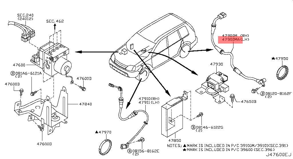 Sensor ABS Trasero X-TRAIL 2002-2011, Izquierdo 47901-EQ010