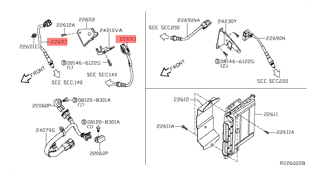 Sensor Oxigeno-O2 X-TRAIL 2011-2014, Pos 1 22693-1AA0A