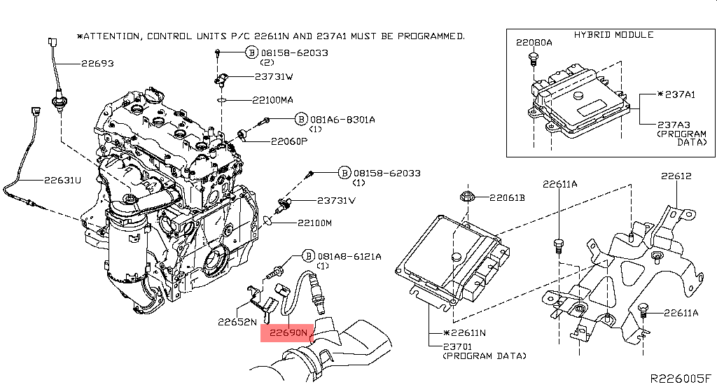 Sensor Oxigeno-O2 X-TRAIL 2015-2022, Pos 2 226A0-9BF0B