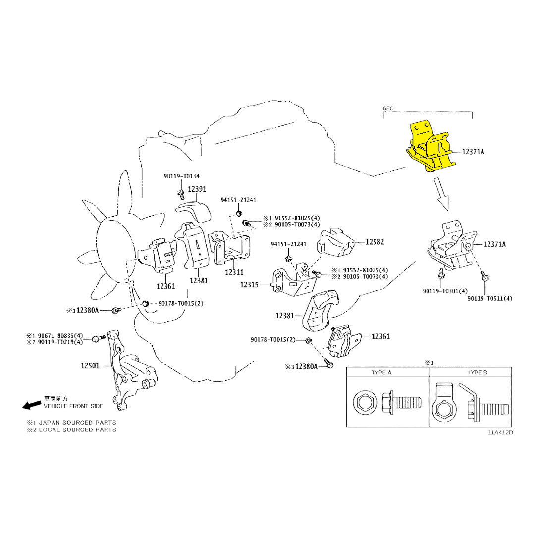 Soporte Motor HILUX (2WD) 2006-2008, Posterior 12371-0L070