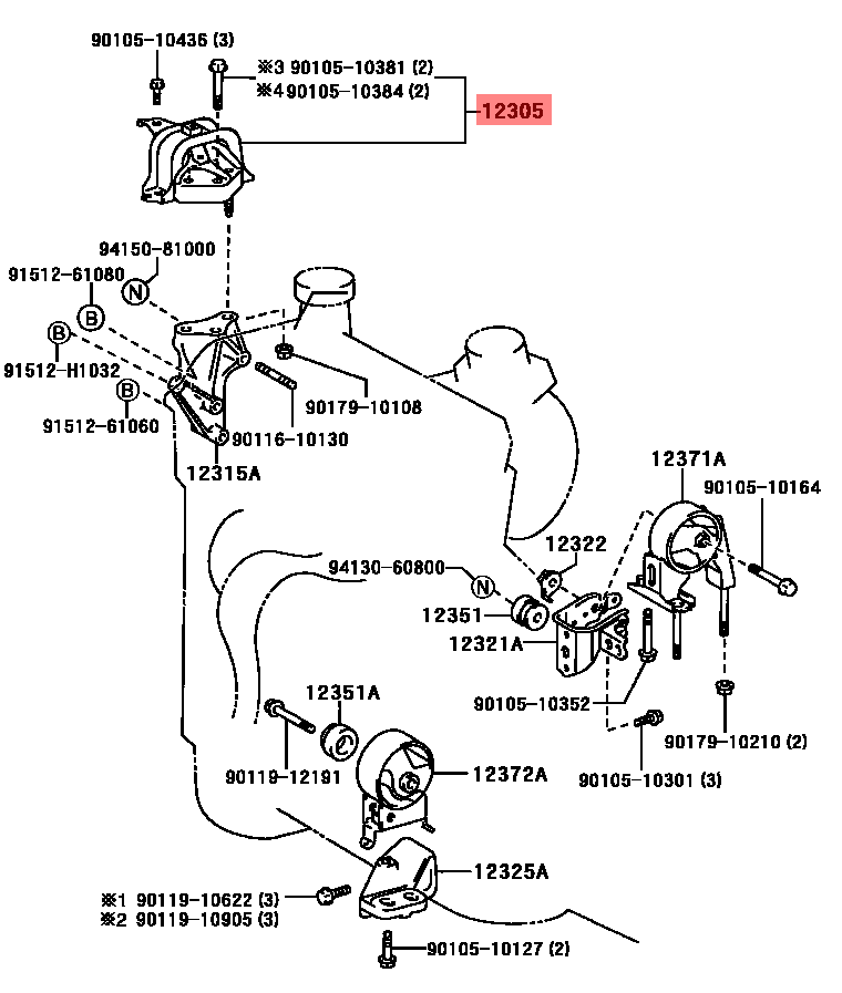 Soporte Motor RAV4 (2.0, MT) 2013-2019, Derecho 12305-37280