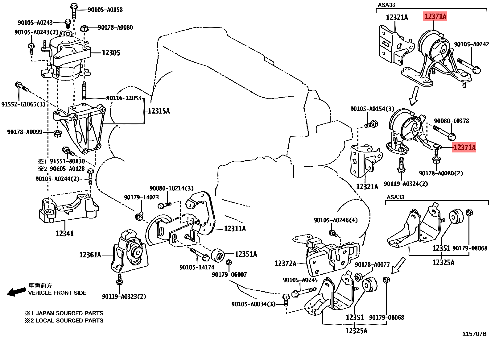 Soporte Motor RAV4 (2.0, MT, 2WD) 2013-2016, Posterior 12371-37170