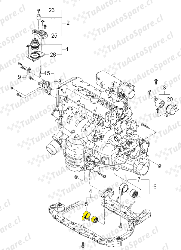 Soporte Motor RIO 2006-2012, Frontal 21910-1G000