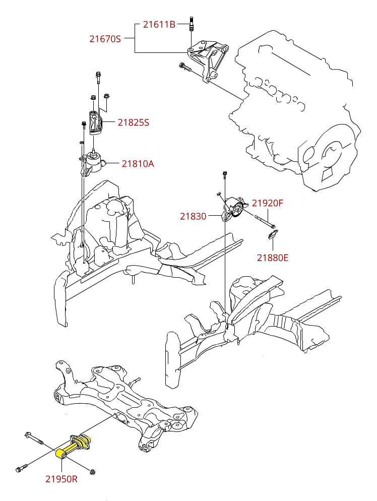 Soporte Motor RIO 2012-2017, Frontal 21950-1R000