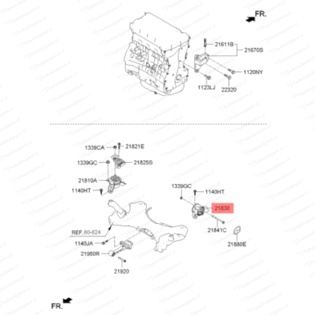 Soporte Motor SORENTO (MT, G4KE, 2WD) 2013-2015, Izquierdo 21830-2P910