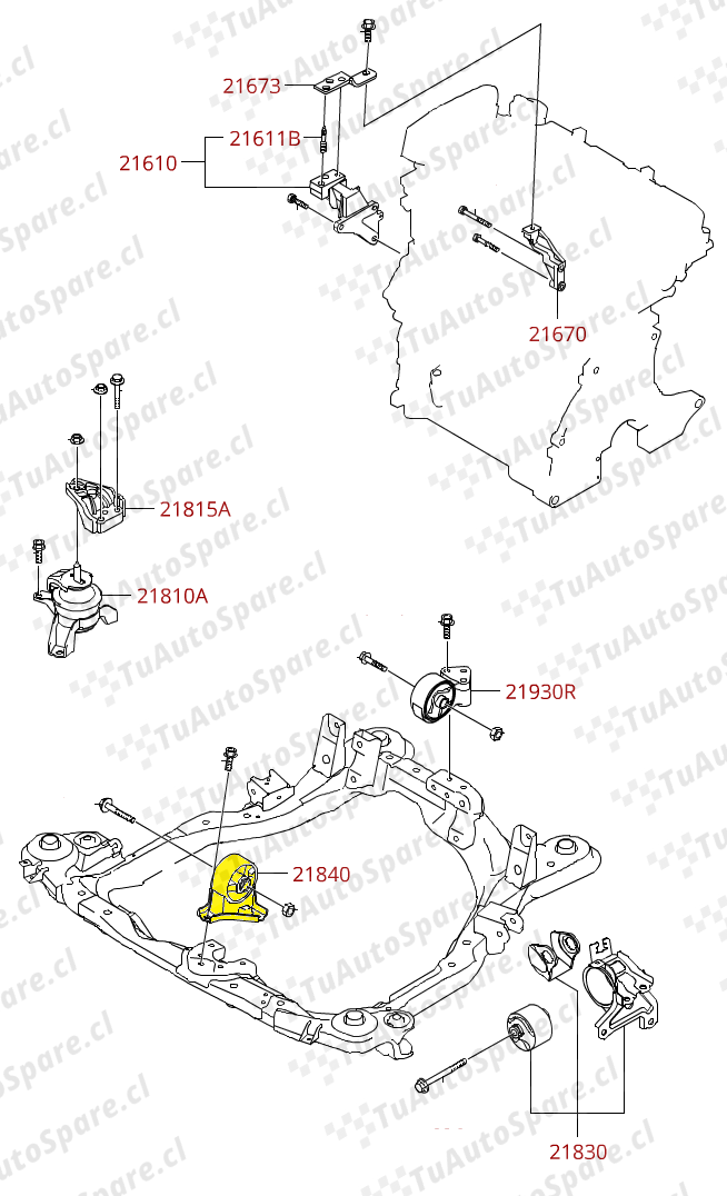 Soporte Motor SPORTAGE (MT, G4GC) 2004-2010, Frontal 21910-2E002
