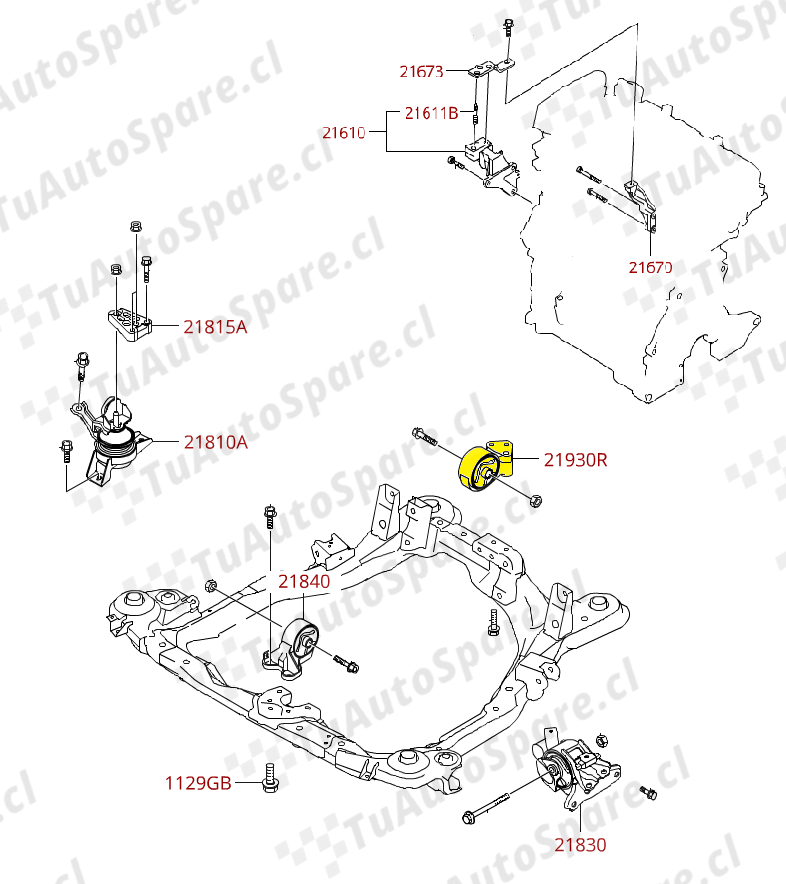 Soporte Motor TIBURON 2001-2006, Posterior 21930-2D100