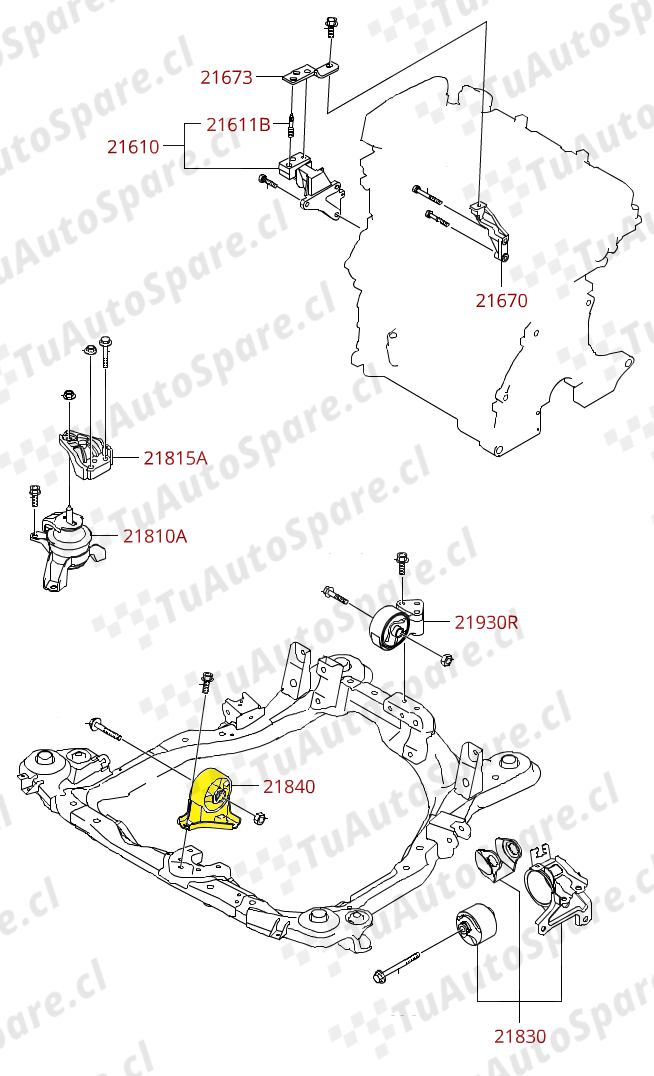 Soporte Motor TUCSON (MT, G4GC) 2004-2010, Frontal 21910-2E002