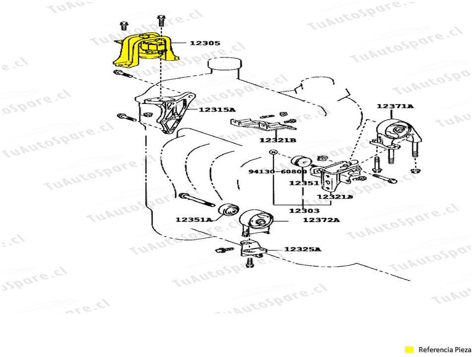 Soporte Motor YARIS 2000-2005, Derecho 12305-21060